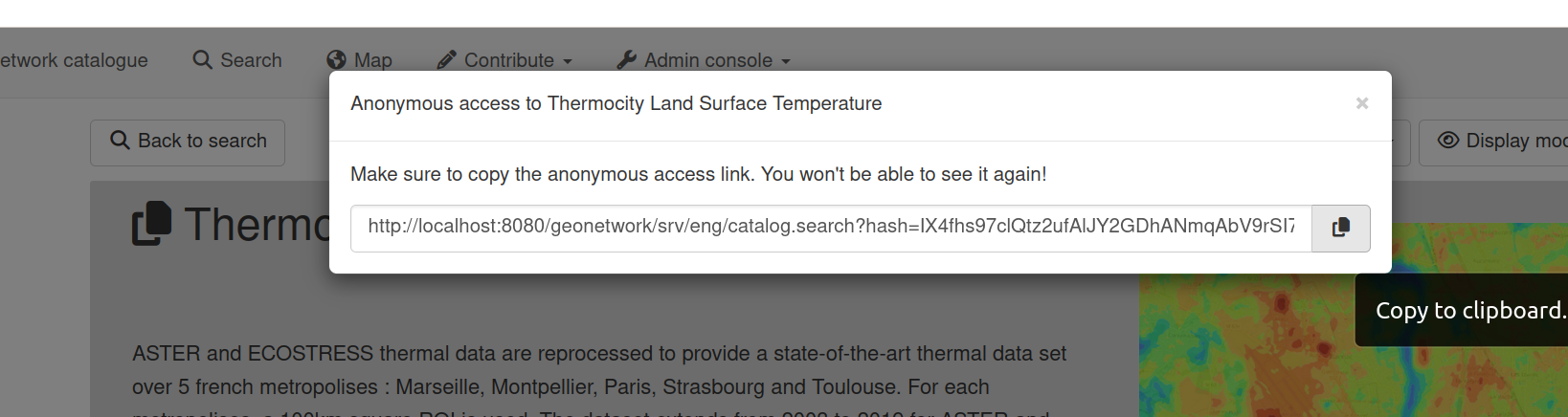 The link can be copied to the clipboard by clicking on the copy to clipboard icon. The administrator can then share the link with the anonymous user, by any means, he sees fit.