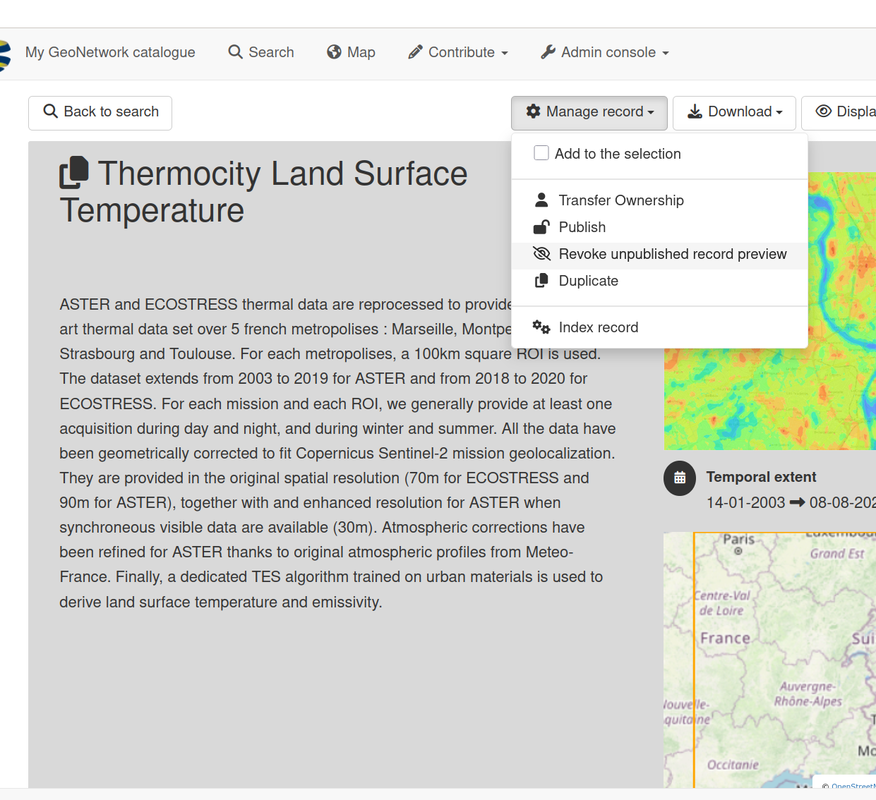 Delete Link To revoke an anonymous link, open the metadata, click on the Revoke unpublished record preview menu. The link is automatically revoked when the metadata is published or deleted.
